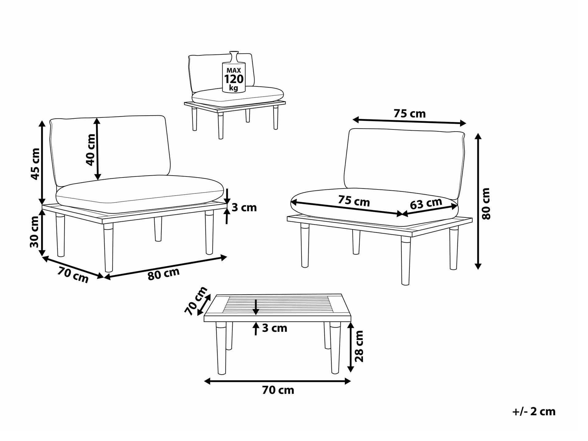 80 x 80 x 70 cm