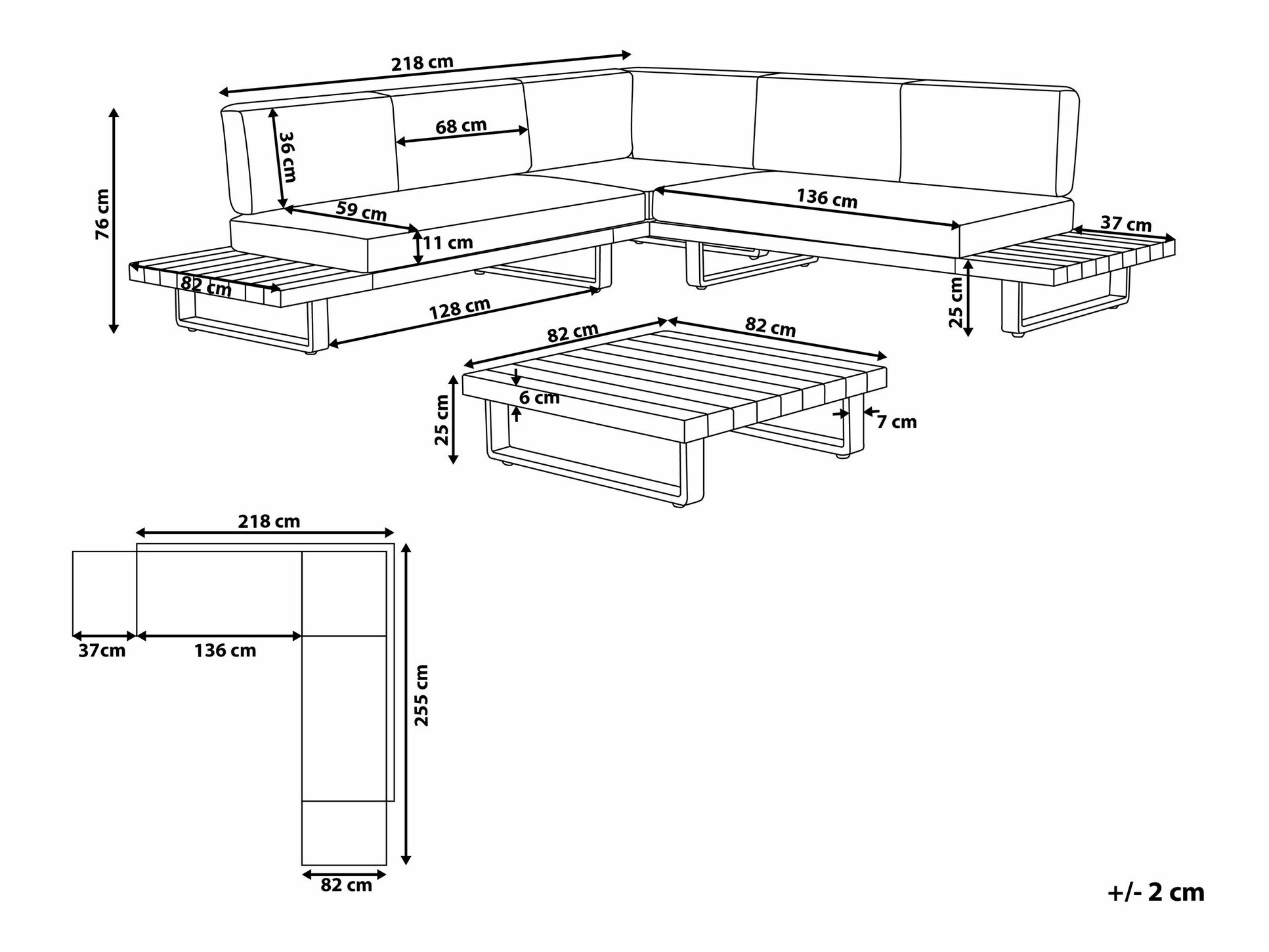 76 x 255 x 255 cm