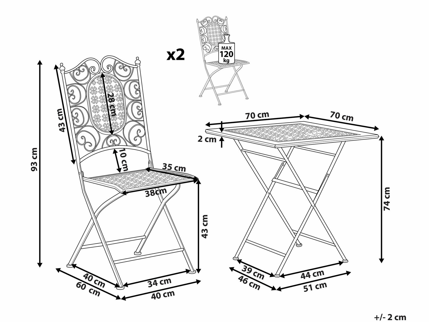 74 x 70 x 70 cm