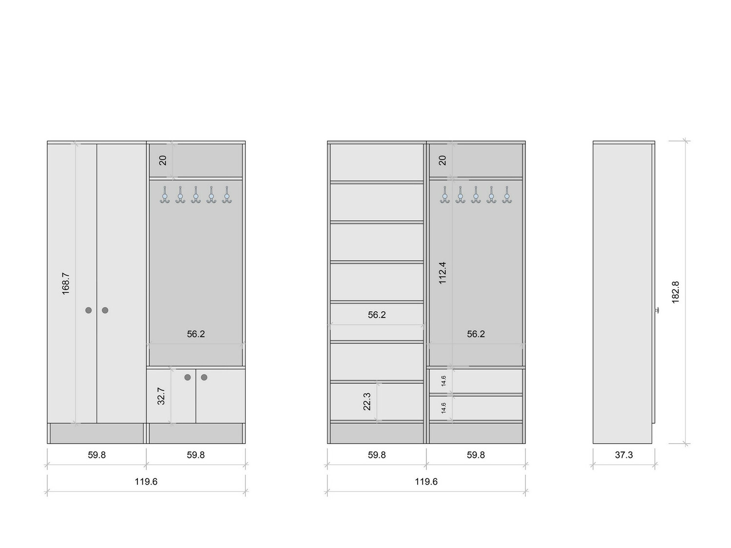 182.8 x 59.8 x 37.3 cm
