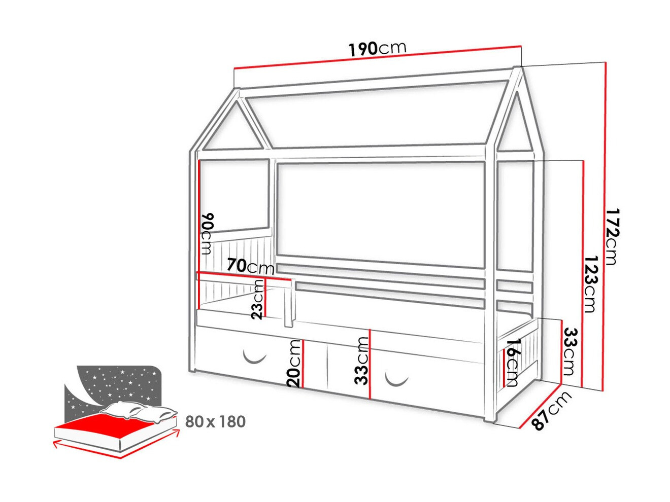 - 80 x 180 cm