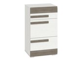 Kui otsite mitmekülgset mööblikollektsiooni, mis sobib kodu erinevatesse ruumidesse, sobib see kollektsioon ideaalselt. Selle kollektsiooni esemed sobivad elutuppa, magamistuppa, esikusse või lastetuppa. Selle kollektsiooni keskmes on mugavus ja ilus disain, mis on kohandatav erinevatele maitsetele. Pleegitatud männi ja halli värvi kombinatsioonon mitmekülgne ja kergesti sobitatav. Mööbli pinnad on vastupidavad väikestele kriimustustele ja nende servad on kaitstud spetsiaalse ABS-liistuga, mis tagab vähem muret kiire kulumise pärast. Mööblile on paigaldatud plastmassist jalad ja käepidemed, mis sulanduvad sujuvalt üldisesse disaini, ilma seda üle koormamata. Vitriinidel on karastatud klaasid, mis on tavalisest klaasist vastupidavam ja turvalisem. Mööbli praktiline ja universaalne omadus on see, et uksed saab paigaldada kas paremale või vasakule poole. Veelgi enam, mööbel pakub nii suletud kui ka avatud panipaiku, mis aitab esemeid organiseeritult hoiustada. Neile, kes soovivad oma kodu interjöörile rohkem omapära lisada, saab nendele esemetele lisaks tellida energiasäästlikud LED-valgustid.