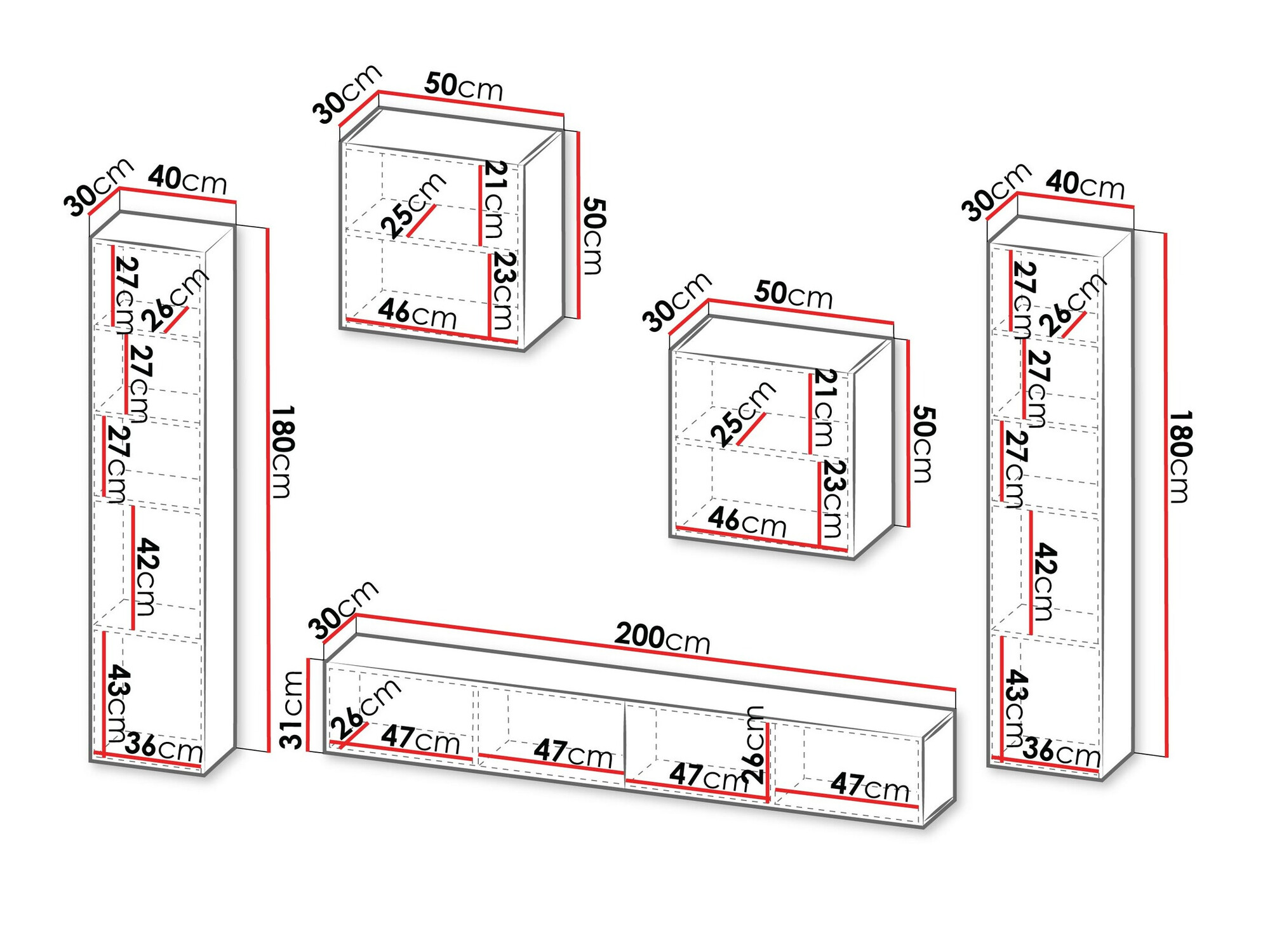 Seinale kinnitamise info. Seinale kinnitatava või rippuva mööbliga ei ole kaasas kinnituskruvisid, seega peate nende eest eraldi hoolitsema. Erinevat tüüpi seinad nõuavad spetsiifilisi kruvisid või isegi erinevat puurimissügavust. Valige paigaldustarvikud mööbli kaalu ja seina tüübi (nt kipsplaat, müüritis, puit jne) alusel. Kvaliteedi ja ohutuse tagamiseks kasutage spetsiaalselt Teie seinatüübile mõeldud kruvisid.