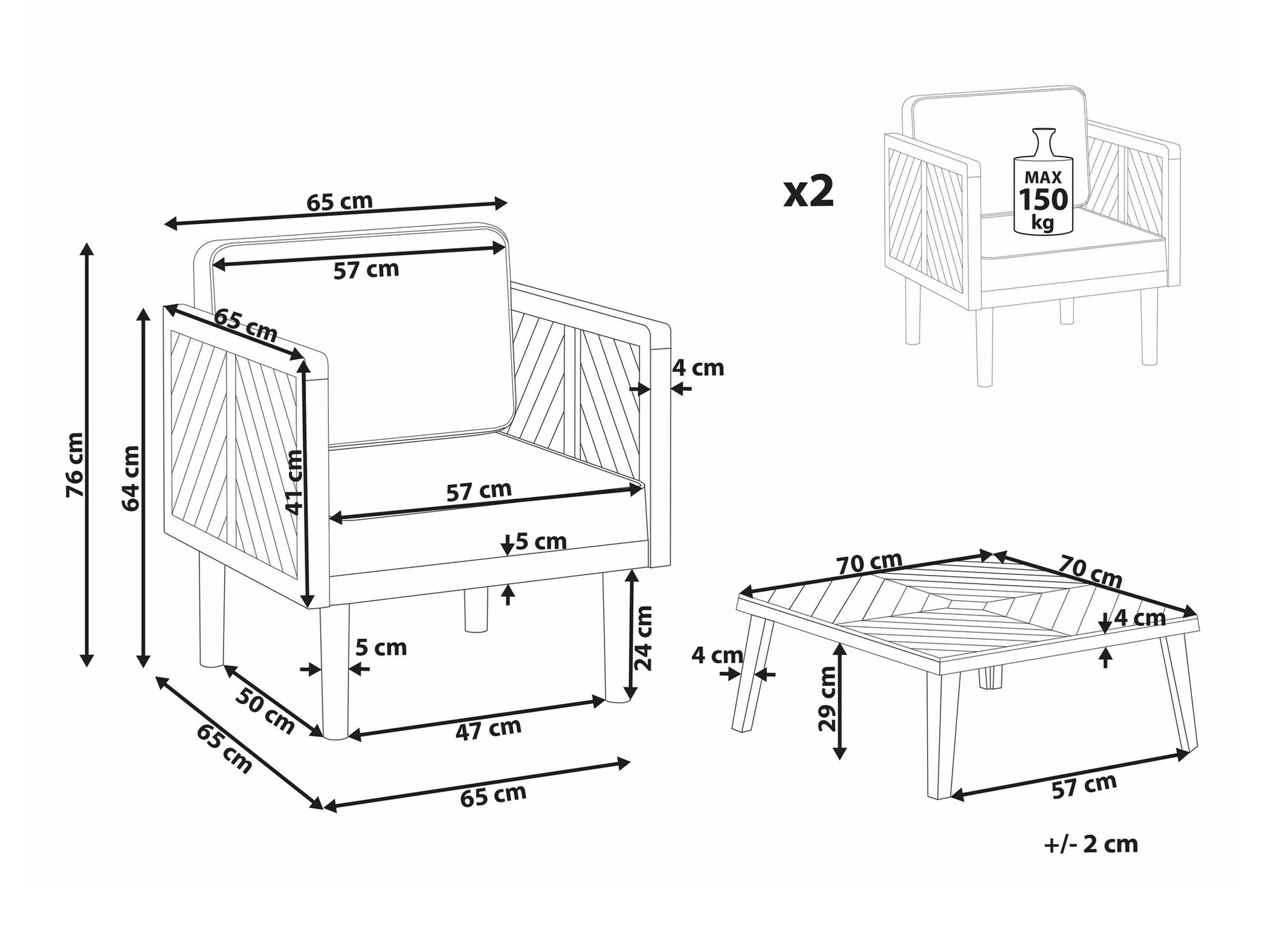 76 x 65 x 65 cm