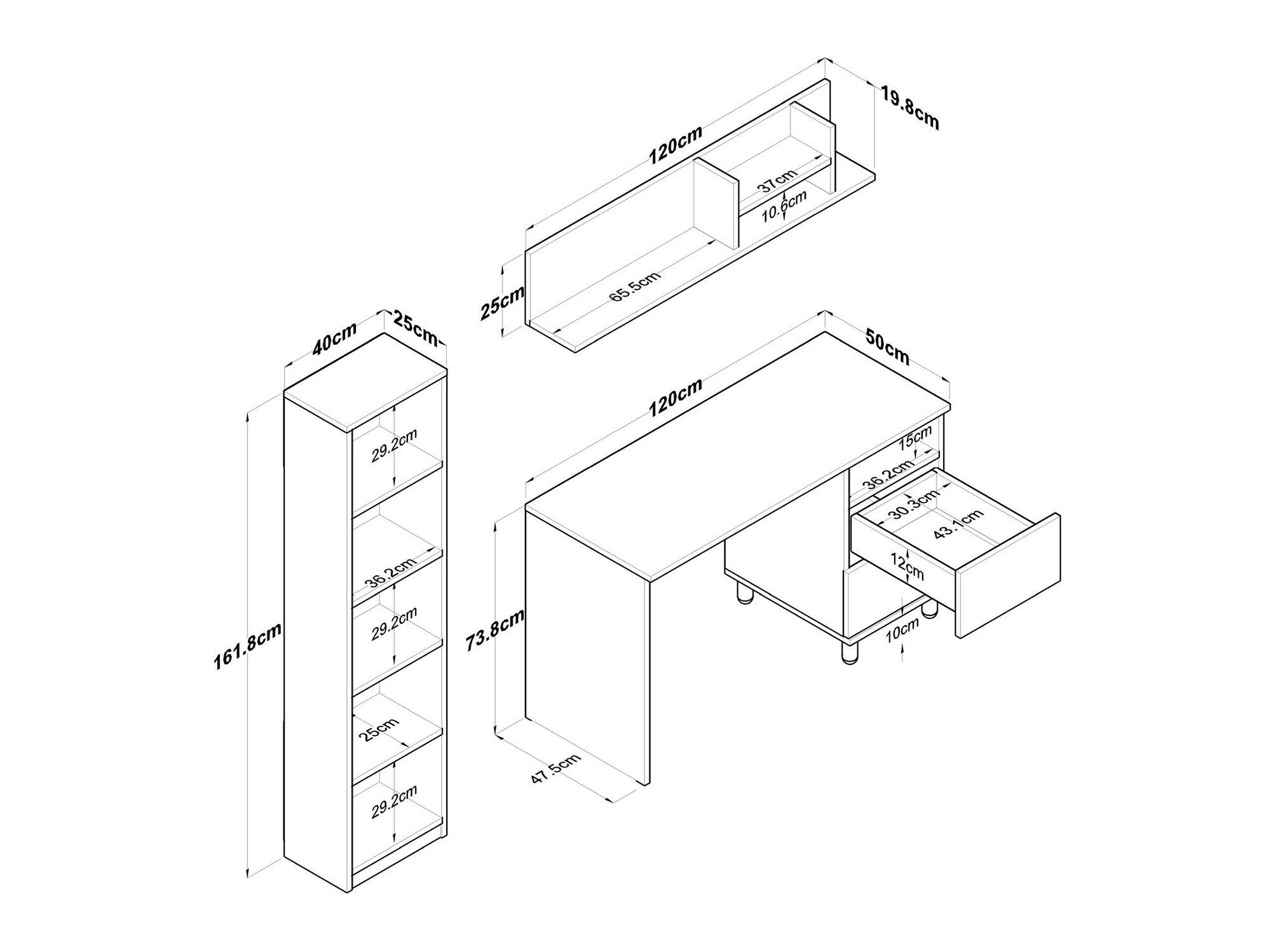 161.8 x 40 x 25 cm