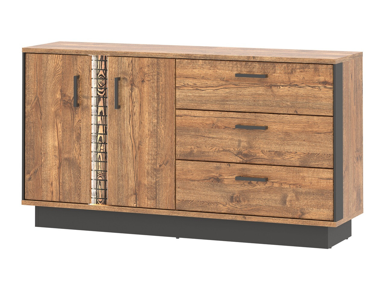 Selle kollektsiooni mööbliga ei jää teie kodu märkamatuks. Kollektsioonis on lai valik tooteid, mis sobivad kõige paremini elu- või magamistuppa. „April" tamme ja musta värvi kombinatsioon sobib eriti hästi tööstuslikku interjööri. Puidumotiiviga detailid on selle kollektsiooni autentne aktsent, mis annavad mööblile omapära. Mustad plastikust käepidemed sulanduvad ideaalselt disainiga. Mööbli fassaadid on valmistatud puitlaastplaadist. Servad on kaitstud spetsiaalse ABS teibiga, mis kaitseb mööblit kahjustuste eest. Sahtlitel ja ustel on vaikne sulgumismehhanism. Vitriinides on kasutatud termiliselt töödeldud karastatud klaasi, mis on palju turvalisem ja vastupidavam, kui tavaline klaas. Lisaks saab hubasteks õhtuteks sisse lülitada energiasäästliku LED-valgustuse. Väga praktiline mööbliese sellest kollektsioonist on transformer-kohvilaud. See laud võimaldab teil kasutada tavalist kohvilauda, mis ei võta palju ruumi, kuid vajadusel saate selle muuta söögilauaks, mis mahutab kogu pere või külalised. Kollektsioonis on ka kahte tüüpi riidekappe - kitsam, hingedega ustega ning suurem, lükandustega ja peegliga. Sobitage selle kollektsiooni mööbel heledate seintega, et anda ruumile omapära. Kombineerides neid tooteid aga tumedate toonidega, loote tõelise industriaalstiilis interjööri.