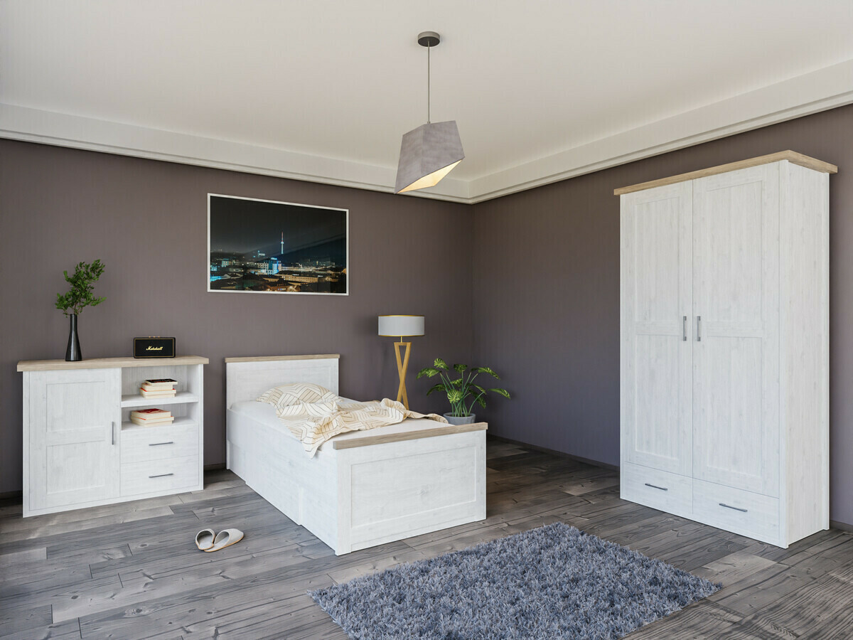 Selles kollektsioonis on kasutatud pehmeid värve, mis sobivad ideaalselt noorte tuppa. Uksi ja sahtleid täiendavad metallist käepidemed on kombineeritud tumeda „Sonoma“ tamme ja „Sibu“ lehise värvidega, mis koos loovad harmoonilise atmosfääri. See kollektsioon on mitmekülgne ja praktiline valik, kuna sisaldab kõike, mida võib vaja minna hubase toa loomiseks ning neutraalne värvikombinatsioon sobib hõlpsasti erinevate sisustusdetailidega.