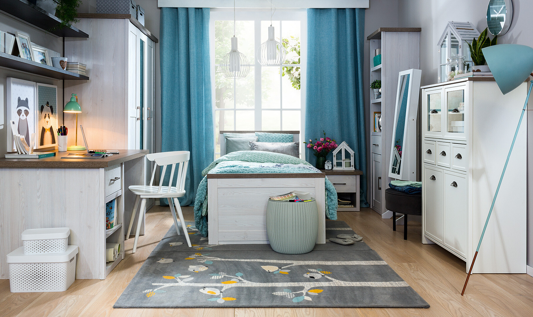 Selles kollektsioonis on kasutatud pehmeid värve, mis sobivad ideaalselt noorte tuppa. Uksi ja sahtleid täiendavad metallist käepidemed on kombineeritud tumeda „Sonoma“ tamme ja „Sibu“ lehise värvidega, mis koos loovad harmoonilise atmosfääri. See kollektsioon on mitmekülgne ja praktiline valik, kuna sisaldab kõike, mida võib vaja minna hubase toa loomiseks ning neutraalne värvikombinatsioon sobib hõlpsasti erinevate sisustusdetailidega.