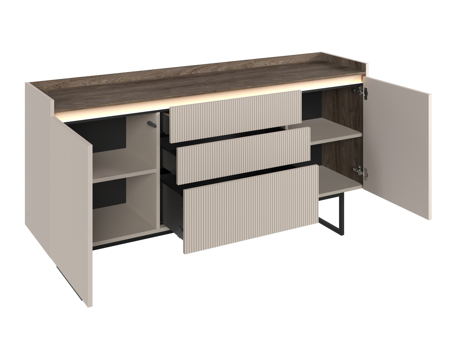 Esitleme eksklusiivset mööblikollektsiooni, mis ühendab endas luksuse ja modernsuse. Selles kollektsioonis on luksuslik „Beige“ ja tume tamme värvikombinatsioon, mida täiendavad stiilsed metalljalad. Uudne „Push to Open“ ukseavamise mehhanism tagab mugavuse ja modernse välimuse, samas kui mööbli õrna soonega esiküljed lisavad eksklusiivsust ja elegantsi. Energiasäästlik LED-valgusti annab pehme valguse, mis loob hubase atmosfääri ning MDF mööbliplaat tagab mööbli vastupidavuse ja tugevuse. Mööbel on kohandatud robottolmuimejaga, nii et teie kodu on alati korras ilma täiendava pingutuseta. See kollektsioon on mõeldud neile, kes hindavad erakordset disaini ja kaasaegset funktsionaalsust. See annab teie kodule võrratu mugavuse ja stiili.
