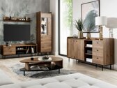 Peenus, elegants ja retrohõng – just nii saab seda kollektsiooni lühidalt kirjeldada. Elegantne ja luksuslik tumeda tamme ja musta värvi kombinatsioon on see, mis annab mööblile omapära. Kollektsioonis on kogu elutoa jaoks vajalik mööbel. Mööbel on valmistatud lamineeritud puitlaastplaatidest, mille servad on kaitstud spetsiaalse ABS teibiga, tänu millele on mööbel löögikindlam. Ustel ja sahtlitel on vaikselt sulguv mehhanism, tänu millele sulguvad sahtlid ja uksed ilma müra tekitamata. Esikülgedel on väikesed mustad metallist käepidemed, mis sobivad mööbliga ideaalselt kokku. Graatsilised metalljalad lisavad ebakorrapärase kujuga mööblile originaalsust ja stiili. Kollektsiooni mööbli hulgast leiate nii avatud kui ka kinniseid riiuleid, mis sobivad need isiklike asjade praktiliseks hoiustamiseks. Vitriinide valmistamisel on kasutatud karastatud klaasi. Selle vastupidavus on 5-6 korda suurem kui tavalisel, termiliselt töötlemata klaasil. Lisaks on võimalik vitriinile juurde tellida LED valgustust. Vitriinid on universaalsed, seega on teil võimalik kokkupanemisel otsustada, kummalt poolt uks avaneb. Loo ainulaadne elutuba, soetades sobiv mööbel eraldi toodete seast või valides juba valmis mööblikomplektide hulgast. Selle kollektsiooni mööbliga saab soovitud ruumist mugavuse ja elegantsi oaas.
