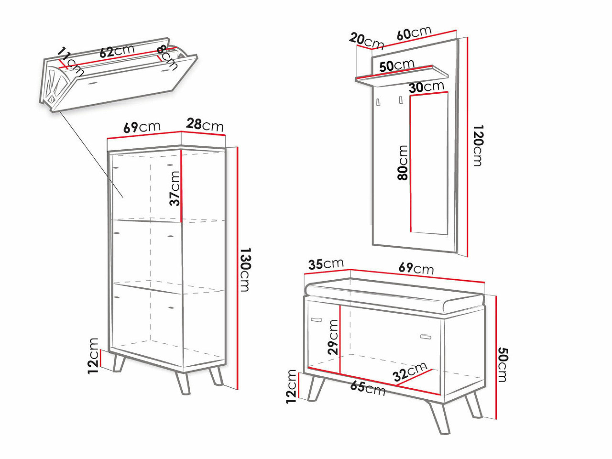 Mööbel näeb välja täpselt selline nagu fotodel! Tänu sellele, et see on kitsas, ei ole esikus üldse rahvast, kuigi panin selle väikesesse esikusse. Ainus miinus on see, et suuremad saapad/saapad ei mahu hästi jalatsikappi.