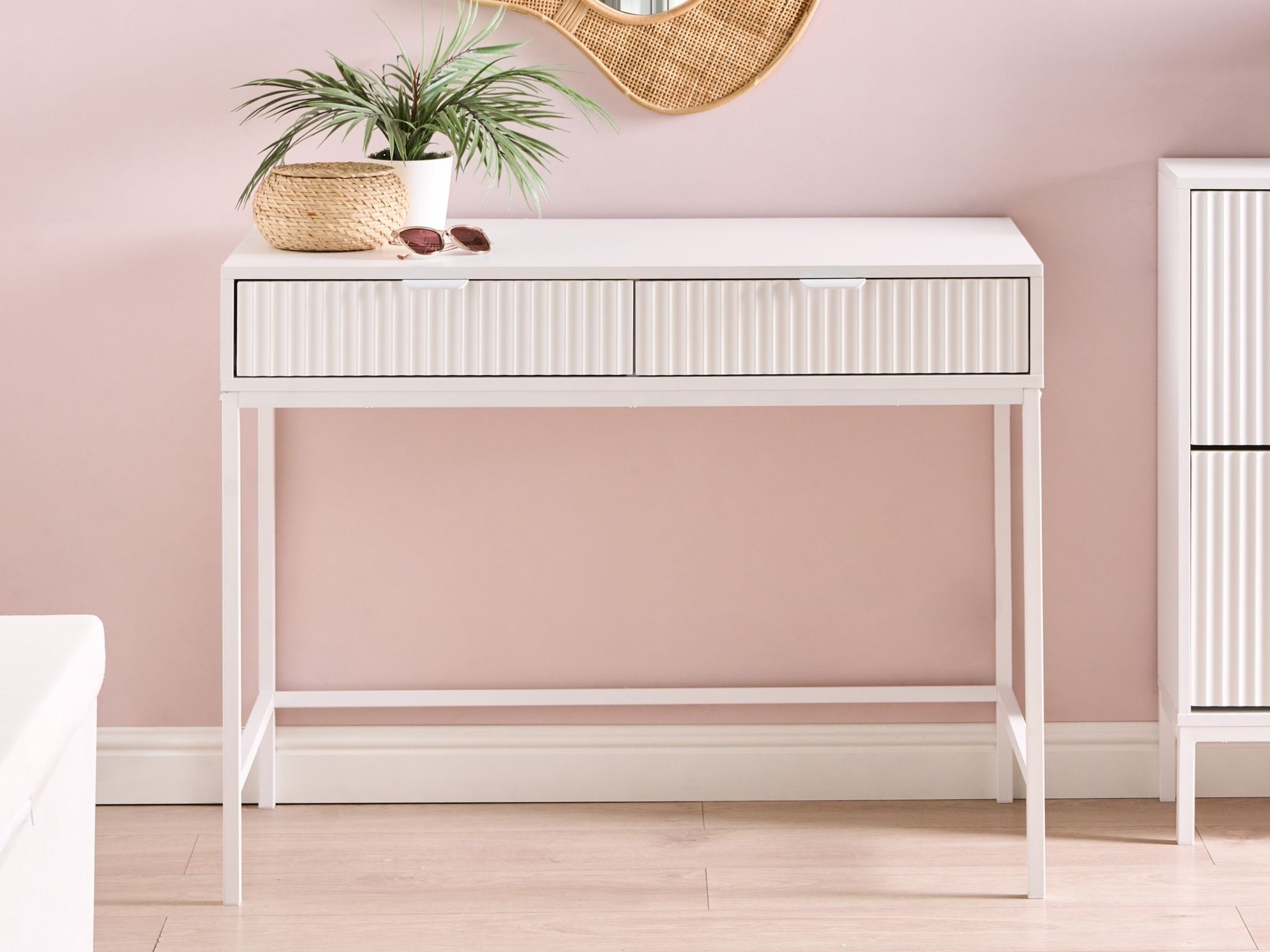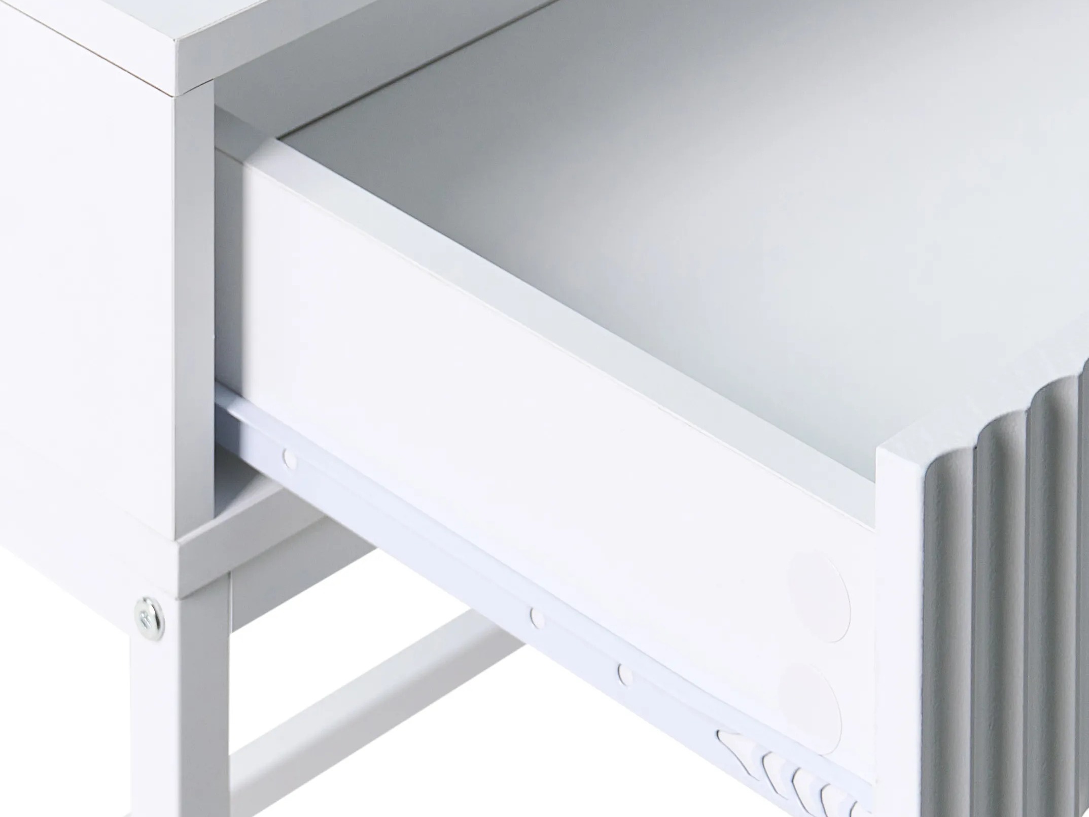 See kaasaegne mööblikollektsioon paistab silma oma peene esteetikaga. Disaini iseloomustavad soonelised esipaneelid, mis lisavad pindadele tekstuuri ja tagasihoidlikku elegantsi, võimaldades mööblil sulanduda sujuvalt erinevatesse sisustusstiilidesse. Metalljalad loovad visuaalse kerguse, samas kui minimalistlikud metallkäepidemed haakuvad terviklahendusega loomulikult, rõhutades kollektsiooni modernset iseloomu. See sari on suurepärane valik neile, kes otsivad oma koduinterjööri viimistletud ja esteetiliselt nauditavaid lahendusi.