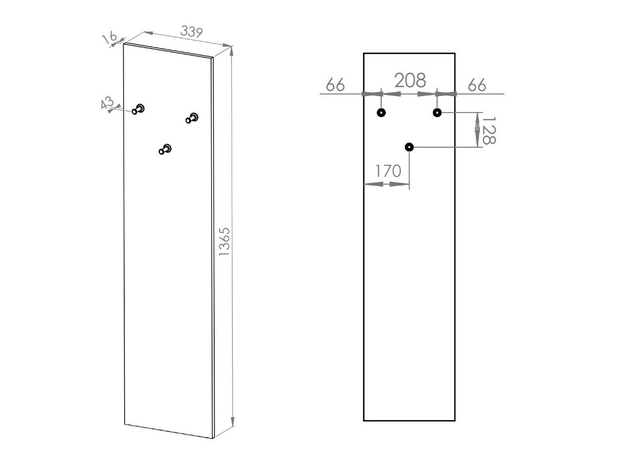 Riidepuu mõõtmed: