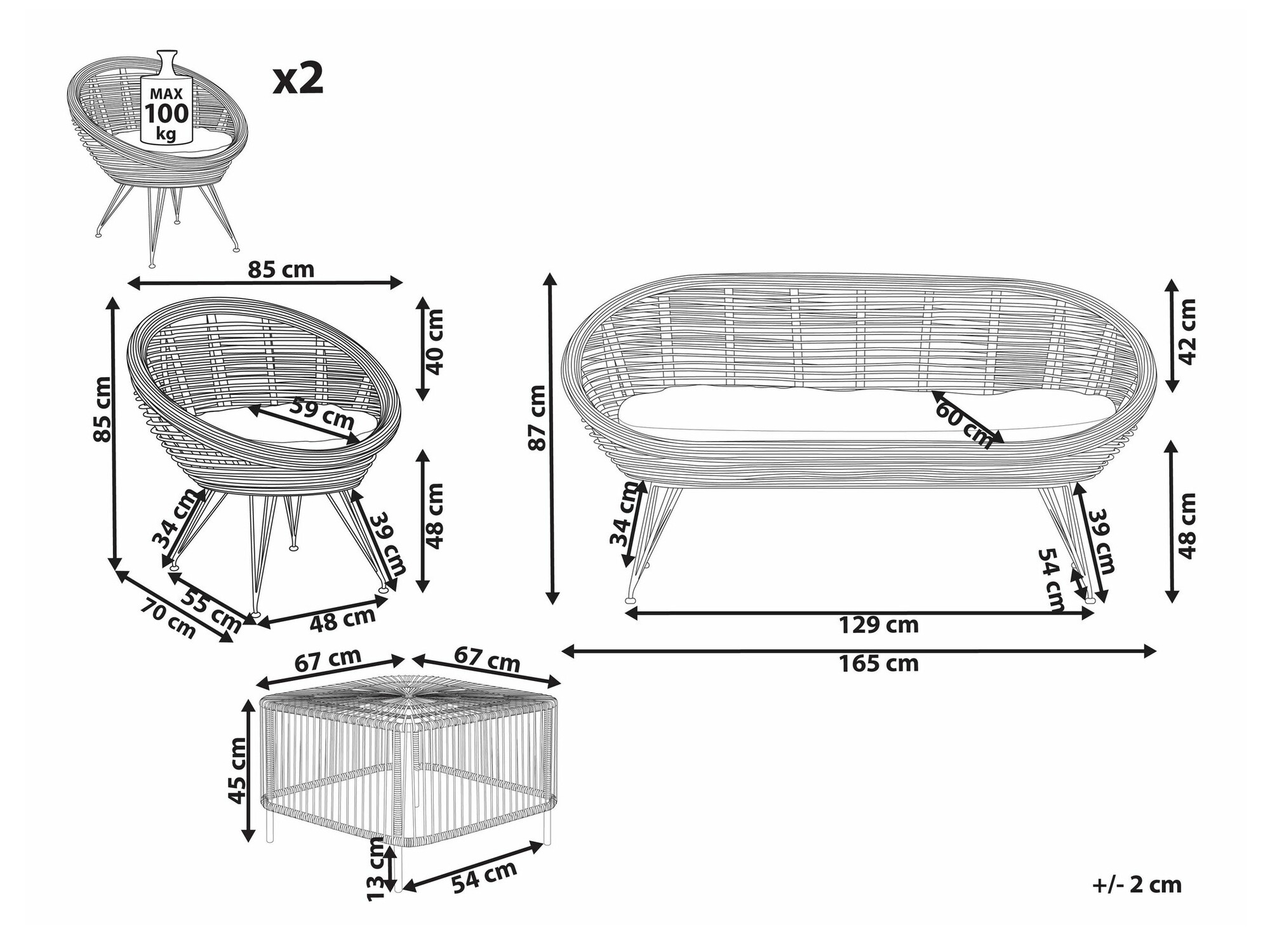 85 x 85 x 70 cm