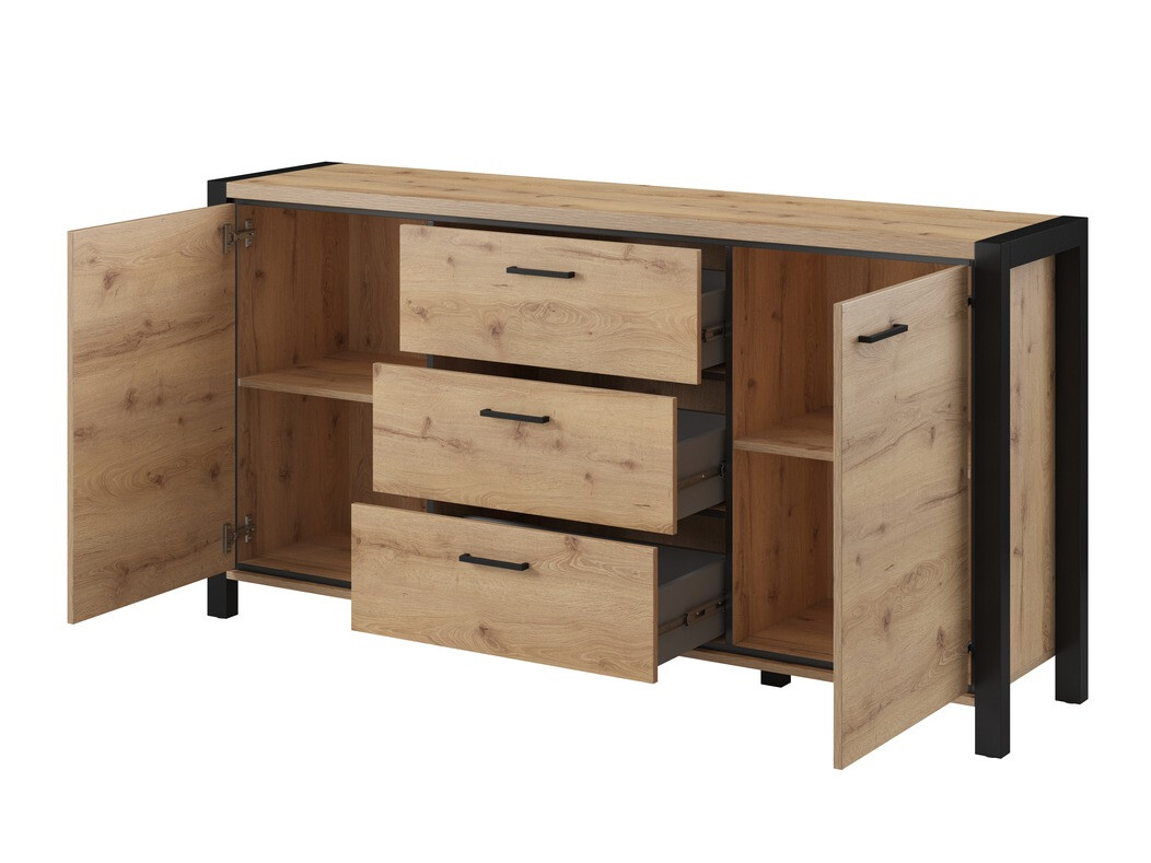 See kollektsioon on mõeldud tööstusliku interjööri austajatele. Metallist käepidemed on kombineeritud heleda tamme värvi fassaadiga, milles on näha puidumustrit. Käepidemete kuju sulandub ideaalselt kogu disainiga. Mööblit tõstavad esile mattmustad servad, mis rõhutavad mööbli ranget siluetti. Kollektsiooni üheks põhijooneks on ruumikus. Äärmiselt avarad mööblisektsioonid tagavad, et kõik asjad leiavad oma koha. See kollektsioon võimaldab Teil kodus ilma suurema vaevata luua tööstusliku interjööri meeleolu. Looge koju veelgi hubasem atmosfäär, tellides lisaks LED-valgustus.