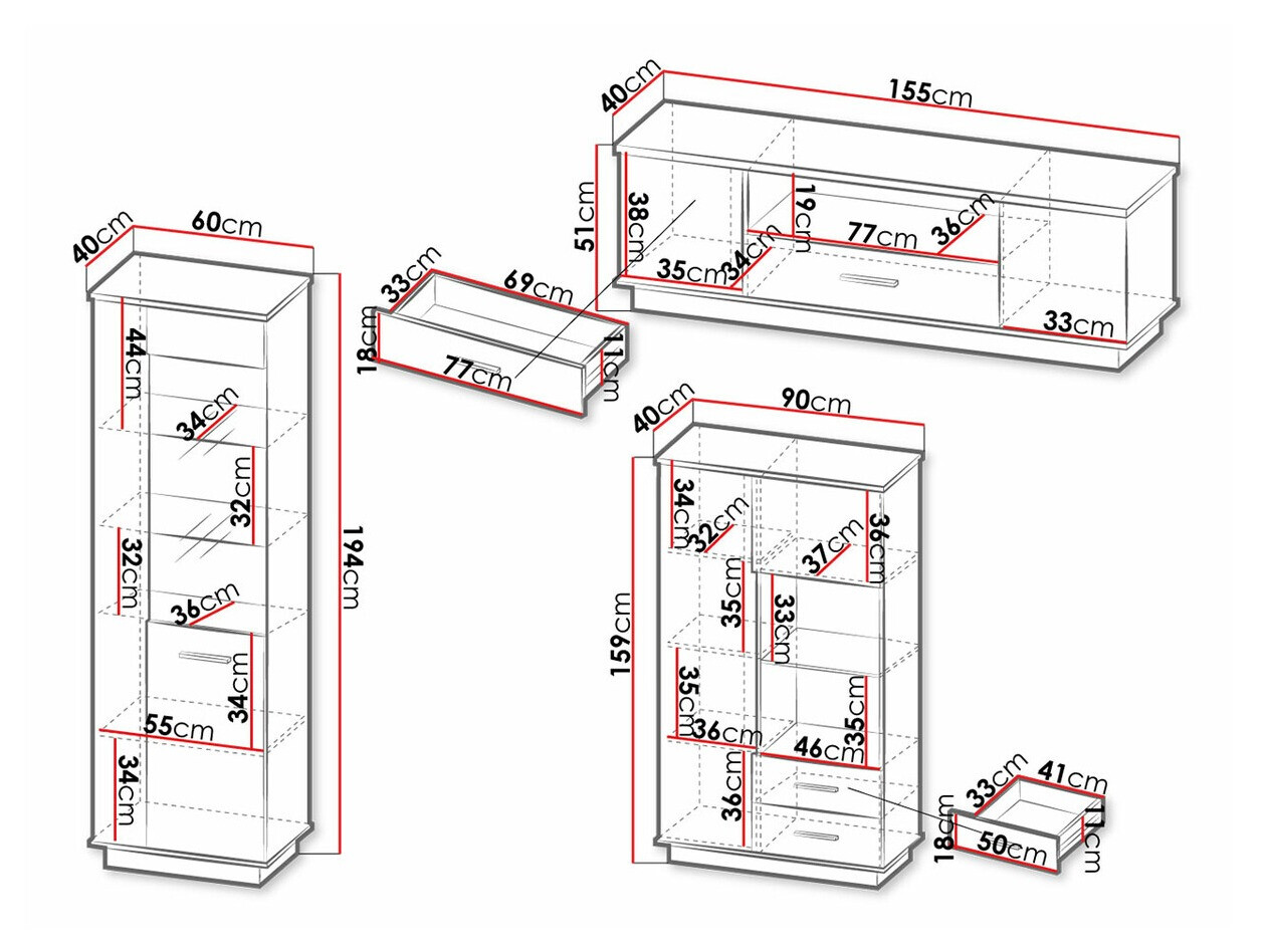 See mööblikollektsioon aitab luua Teie kodus hubase ja sooja õhkkonna. Dekoratiivsed esipaneelid ja mustad plastikust käepidemed lisavad mööblile omapära ja annavad võlu üldisele interjöörile. Vitriinmööblil on karastatud klaas, mis on tavalisest kuumtöödeldud klaasist vastupidavam. Kasutatud on MDF-paneele, kuna need on väga vastupidavad purunemisele ja paindumisele. Hubasuse lisamiseks on võimalik eraldi tellida LED-valgustus, mis suurendab veelgi Teie kodu sooja õhkkonda.