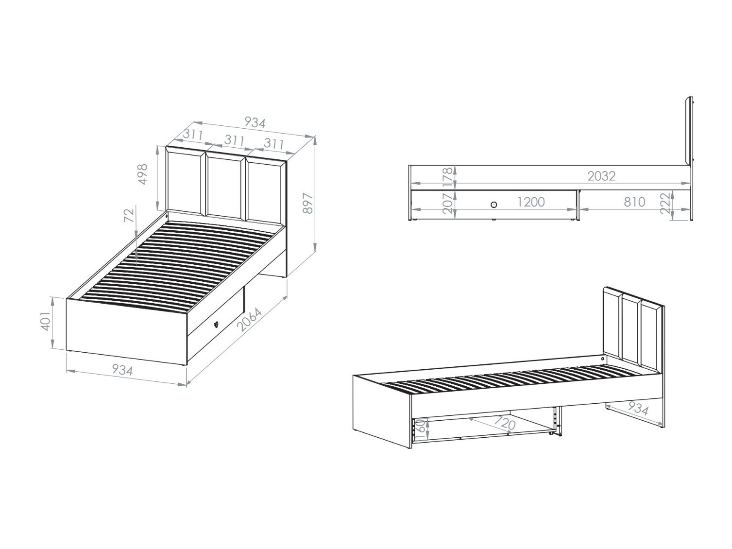 Voodipesukasti mõõdud: