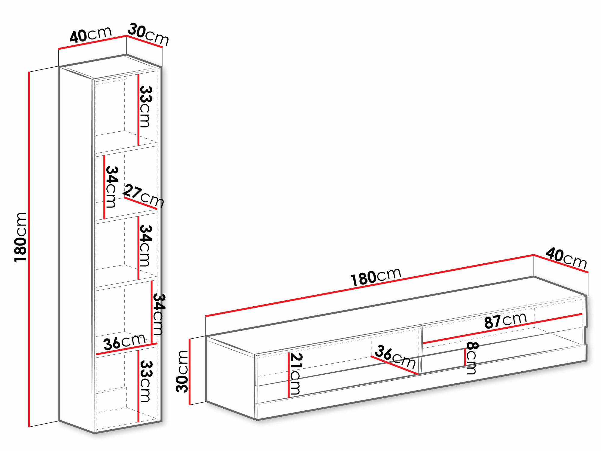 30 x 180 x 40 cm