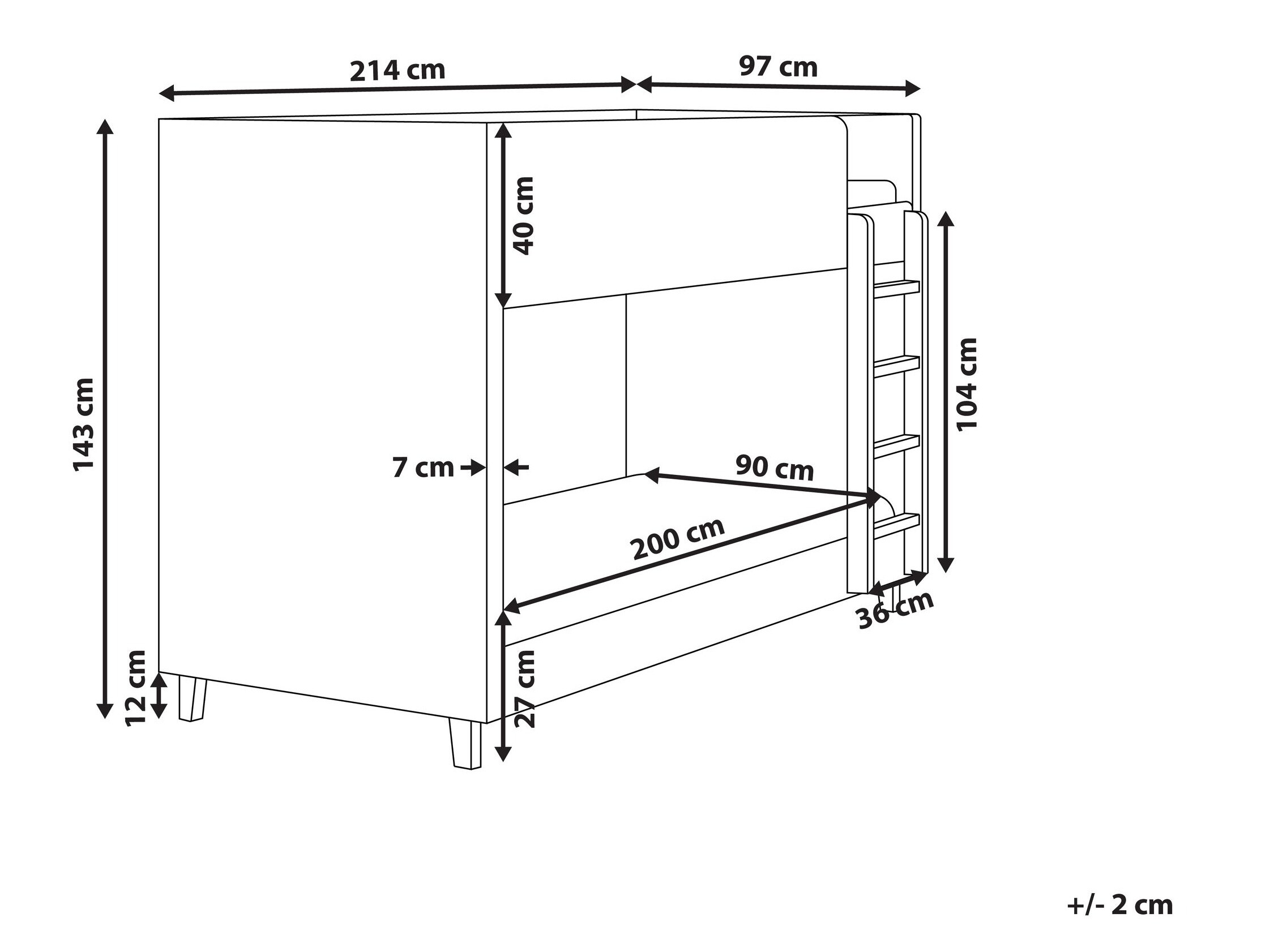 - 90 x 200 cm