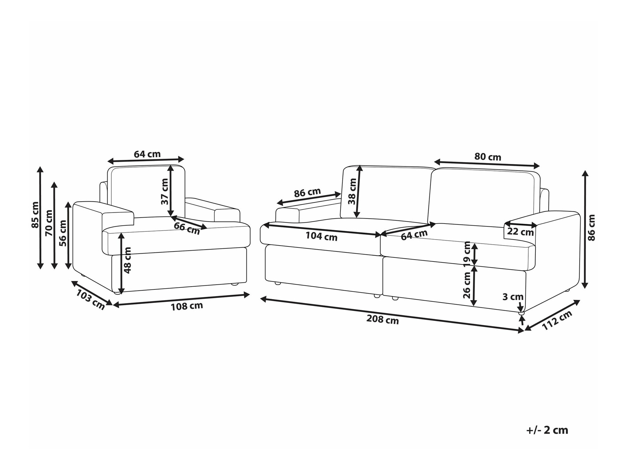 86 x 208 x 112 cm