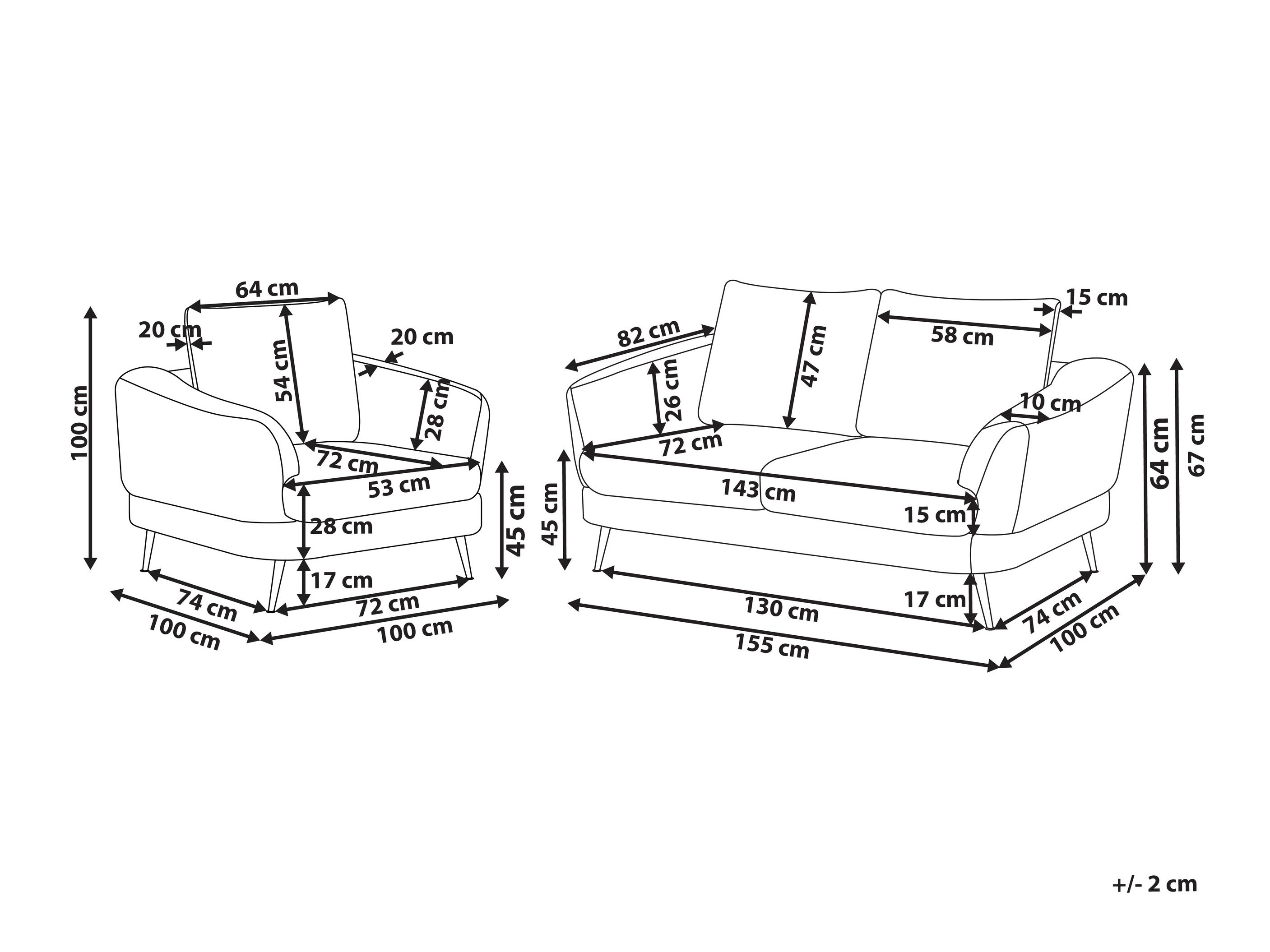 67 x 155 x 100 cm