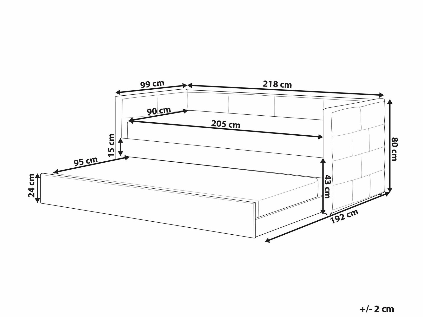 - 90 x 200 cm