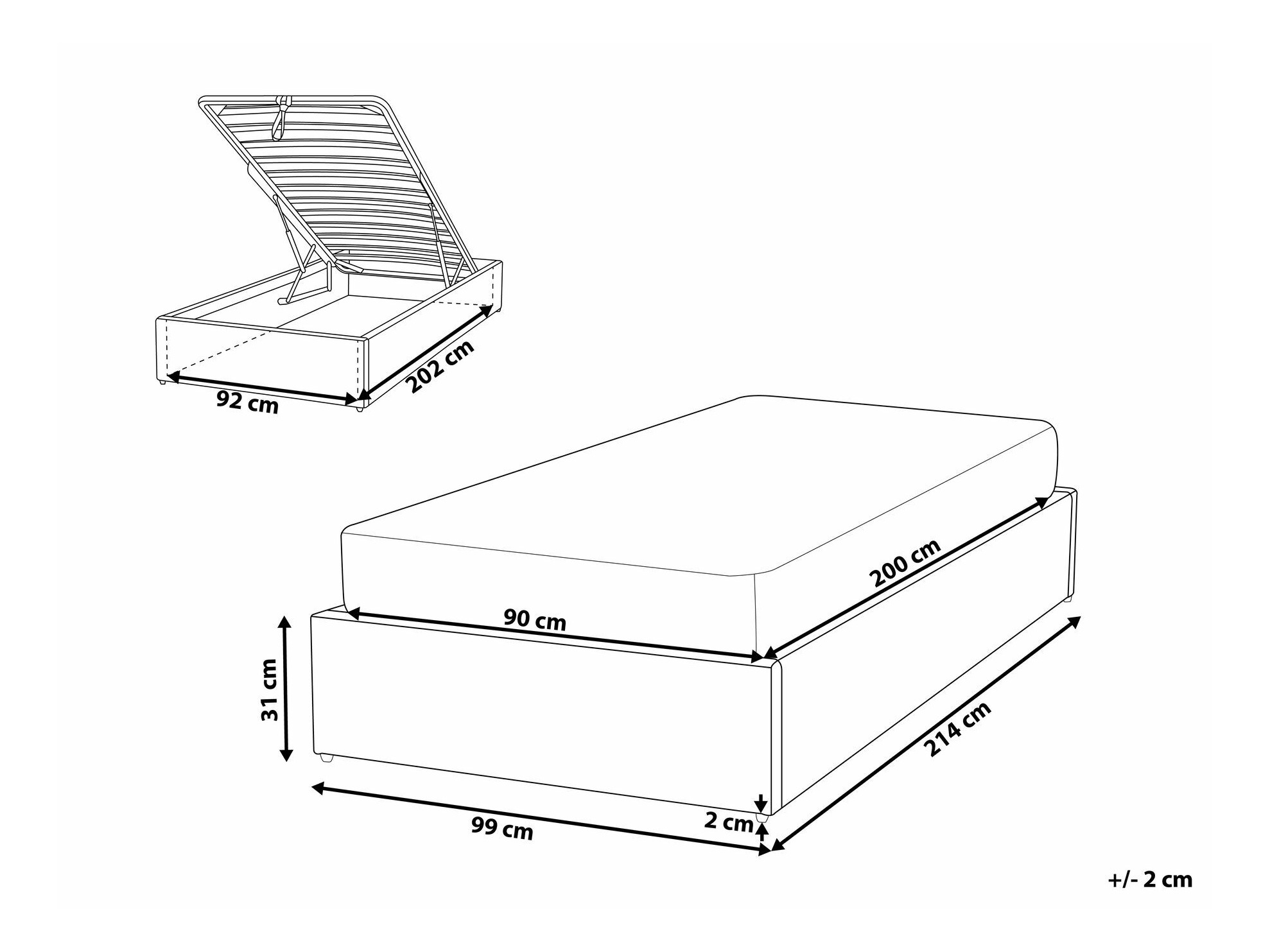 - 90 x 200 cm
