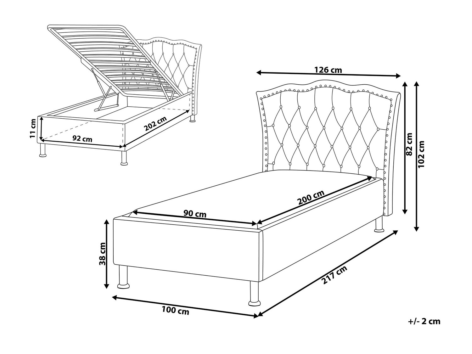 - 90 x 200 cm